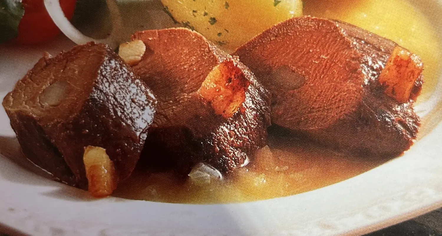 Fiecare gospodărie rurală dispunea de un efectiv animalier apreciabil : orătănii, porci, oi, vaci pentru lapte. În preajma Crăciunului se sacrificau porcii și germanii, neîntrecuți măcelari, transformau carnea în diverși cârnăciori, sângerete și carne cu untură, slănină care se păstra la oală sau în podul casei. Erau amatori de fripturi din carne de porc,vită și curcan, cu garnitură de cartofi copți și castraveți și varză acră/Sauerkraut, iar celebrul șnițel din carne de porc sau de pui era periodic gătit în familiile germane ale Bucovinei. La munte se utiliza mult și carnea de vânat. De pildă, friptura vânătorului/Jaegerbraten se prepara din carne de vită sau vânat, condimente, roșii, unt, ceapă, pătrunjel, ciuperci și vin alb. Se mai pregătea și gâscă sau rață umplută cu mere.