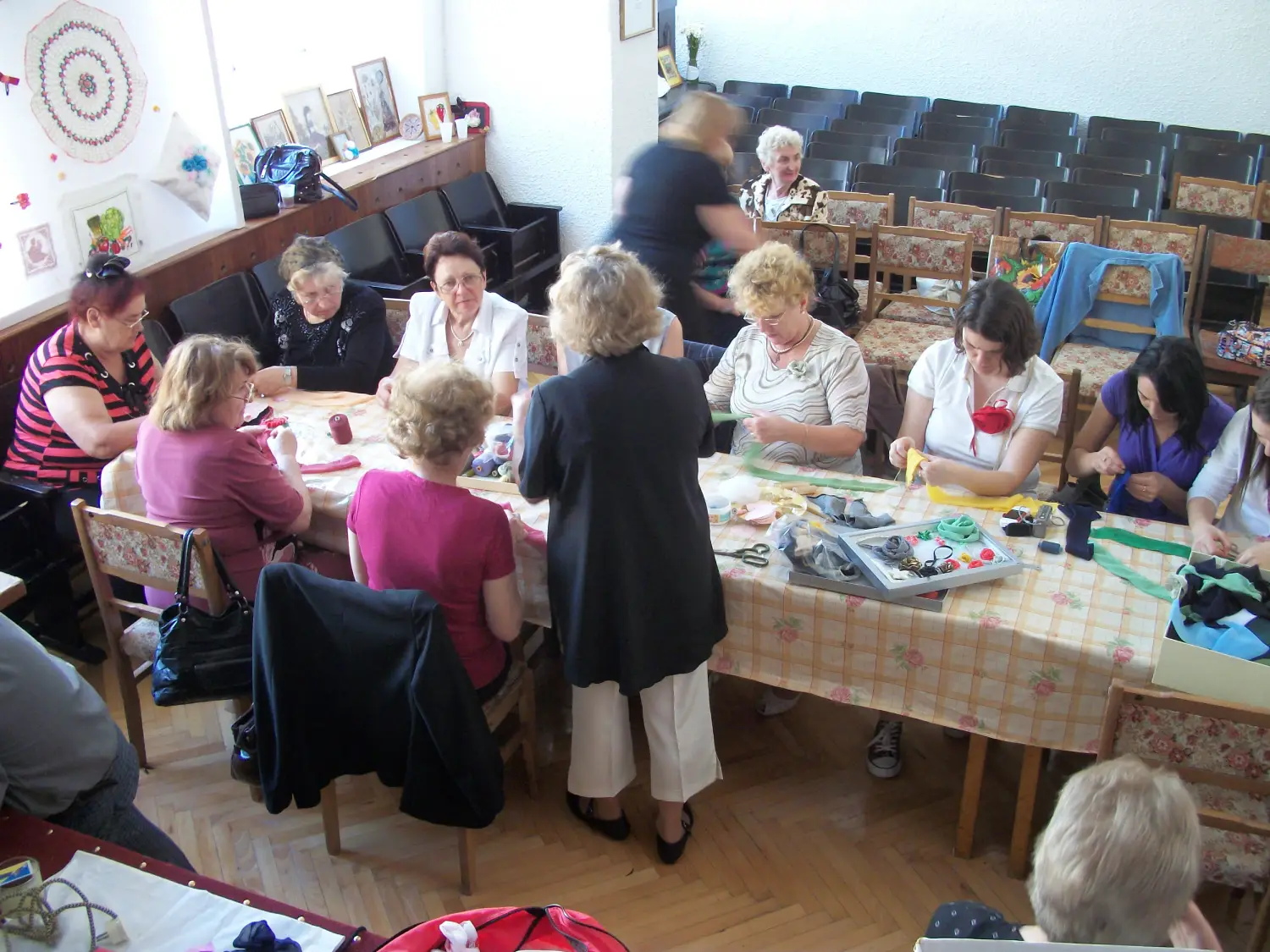 Cercurile de lucru manual/Arbeitskreis, promovate de asociației doamnelor germane, erau foarte active. Acestea se derulau fie la Casa Germană, fie la domicilii, prin rotație, unde se confecționau piese ale costumului popular german feminin/Tracht, diverse obiecte estetice de uz casnic (fețe de masă/Tischleifer, cămăși, paretare cu mesaje spirituale, batiste, panglici, prosoape, funde, manșete din dantelă), se împleteau ciorapi, se croșetau, se brodau și se țeseau obiecte pentru uz bisericesc (fețe de pernă de altar, fețe de masă de altar).