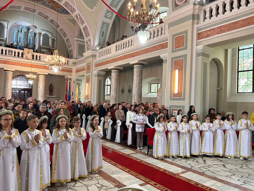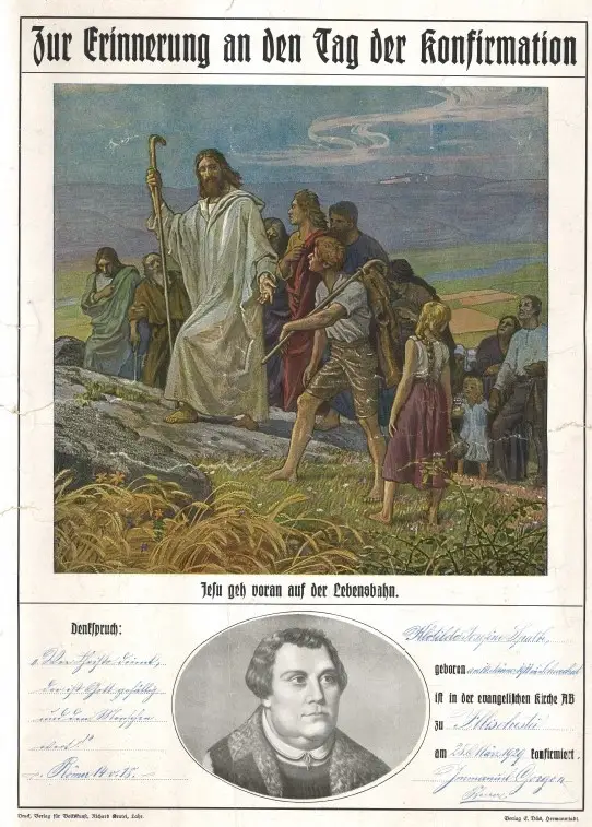 Trebuie menționate și tradițiile de inițiere religioasă, la mare cinste atât la credincioșii romano-catolici cât și la cei luterani. În biserica romano-catolică, la împlinirea vârstei de șapte ani, într-un cadru festiv, copiii primeau prima împărtășanie (Erstes Abendmahl). Tinerii aspiranți trebuiau să dovedească cunoașterea noțiunilor elementare ale vieții creștine și a conținutului Bibliei. Importanța momentului era subliniată prin îmbrăcarea unor piese vestimentare imaculate și implicarea nașilor de botez.